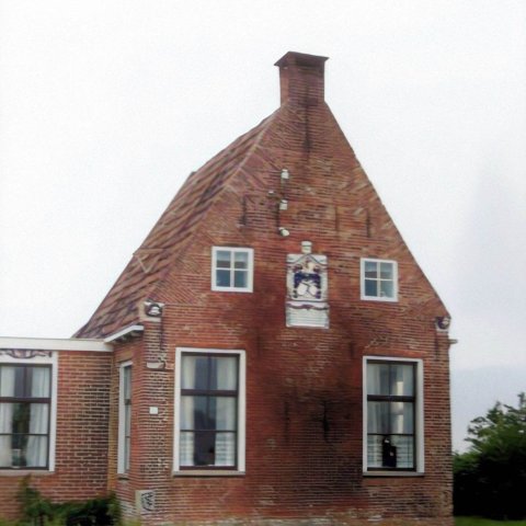 ‘Deze poort, die Parchia van Roorda, de weduwe van den edelen Pibo van Emegha, in het jaar 1630 begon te bouwen, nadat de eerste steen was gelegd door de jeugdige Pibo van Aggama, een kleinzoon van de genoemde Roorda, is onlangs opgetrokken en in deze vorm voltooid’.